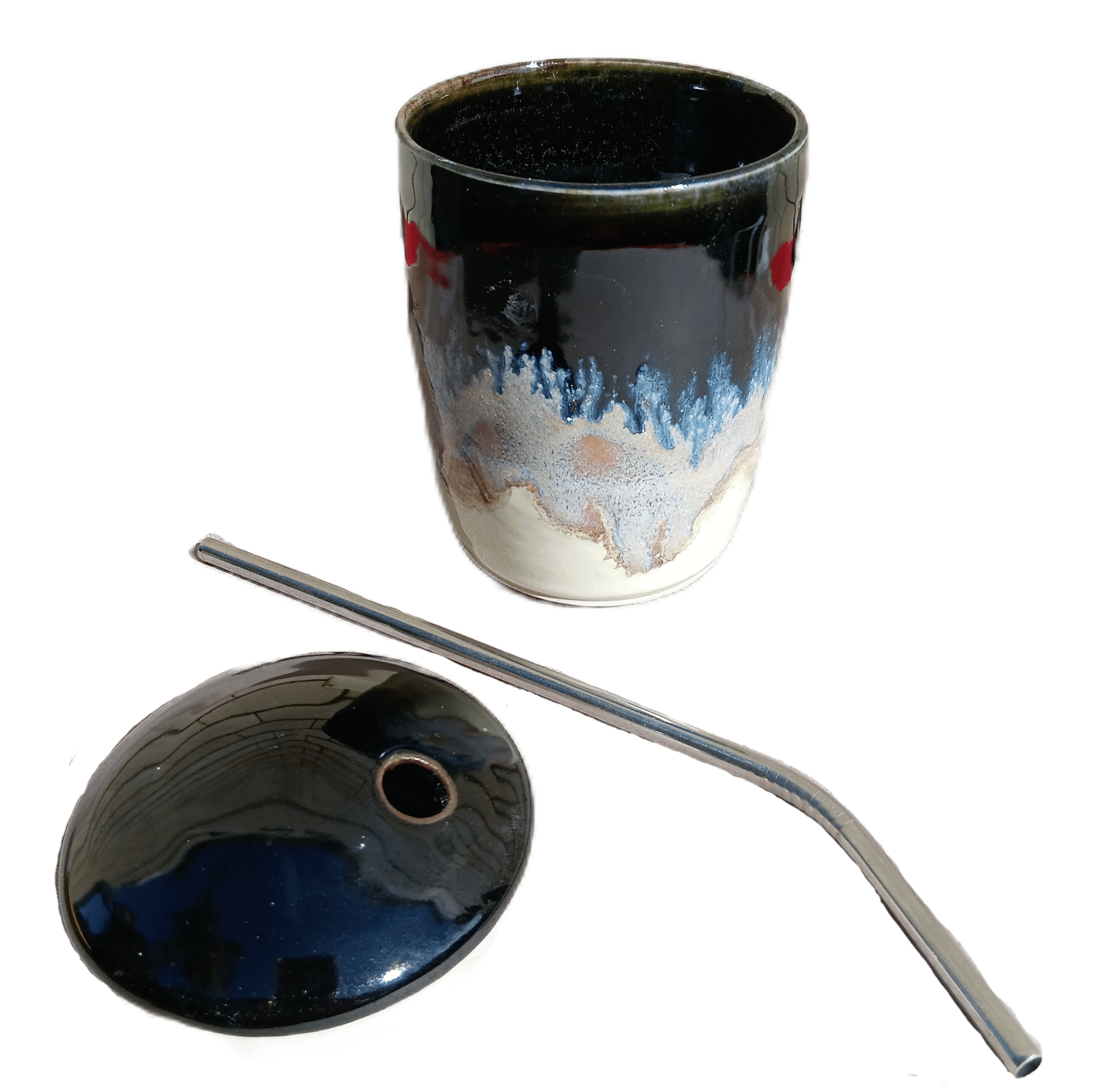 This capped beaker allows you to drink through a straw, or remove the cap and drink directly from the beaker, because the lip is fully glazed.