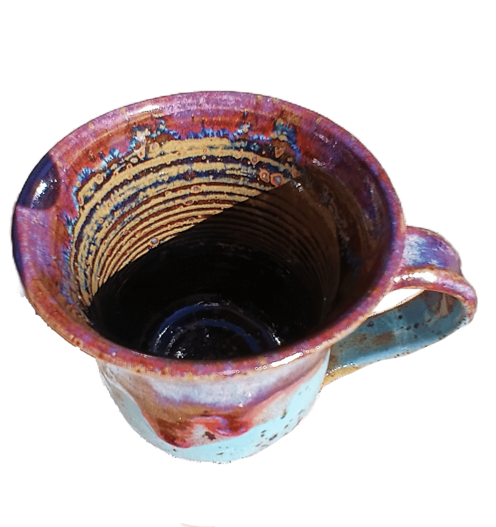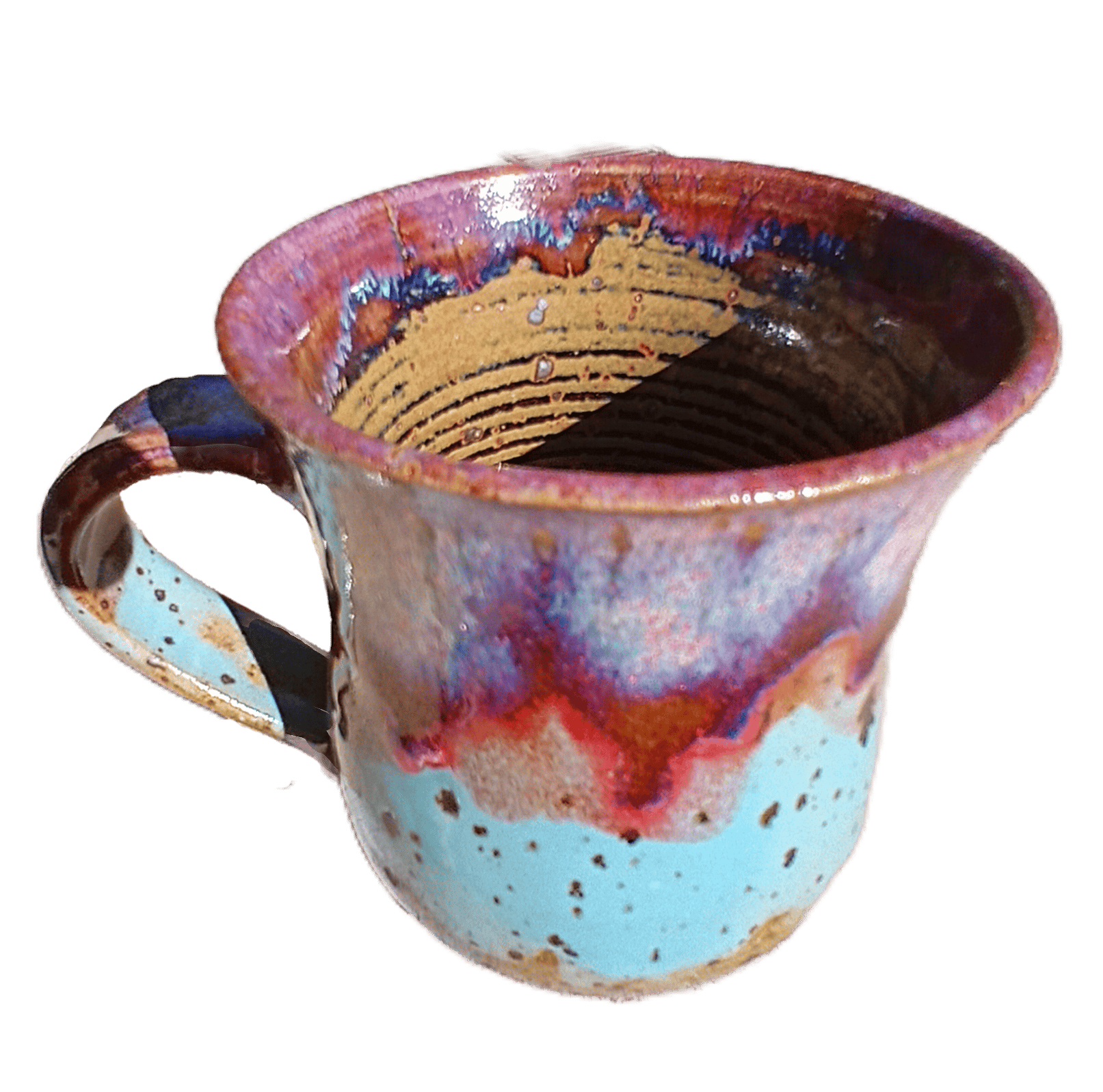 Stoneware coffee mug. Iron rich clay. Microwave safe. Dishwasher safe. Sturdy handle. Approx 11cm tall