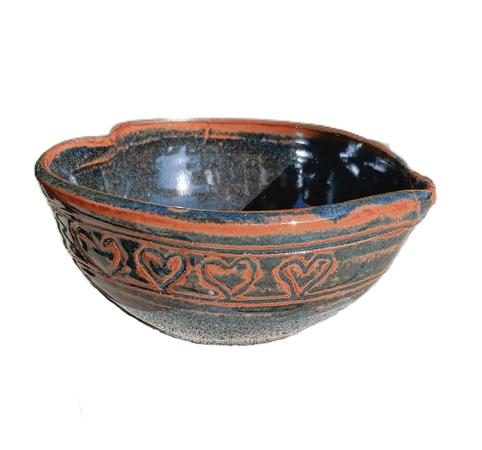 Stoneware pottery bowl. Approx 15 cm diameter. Tenmoku glaze. Ideal gift for Valentines Day or Mothers Day.