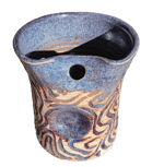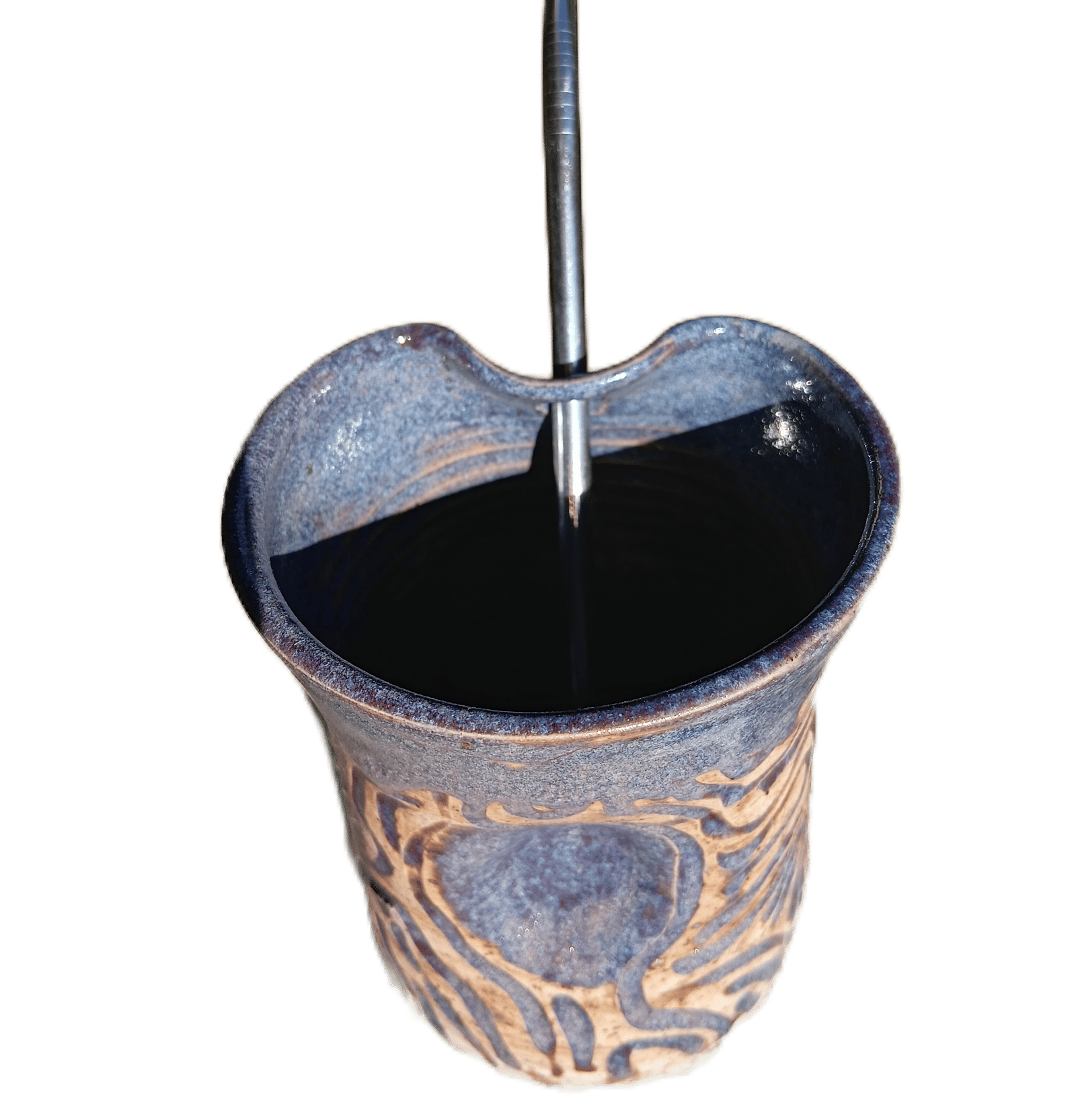 This stoneware beaker features a pierced divot in the rim for a straw. Ideal for an iced coffee. Waterproof. Microwave safe. Includes straw.